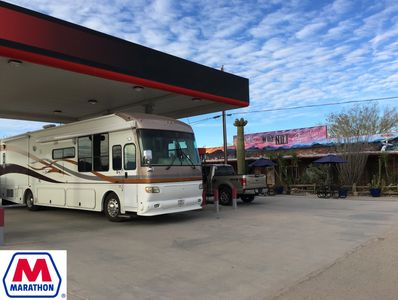 Fuel: The Why Not Travel Store sells the Marathon brand of quality fuels and has four fuel dispensers that provide point-of-sale access on each side of the dispenser to handle eight vehicles simultaneously. For our Diesel customers, you will want to use pumps 1,2,5 and 6. These pumps are closest to the store and are the only pumps that dispense all three blends of gas and diesel. Pumps 3,4,7 and 8 only dispense gas.